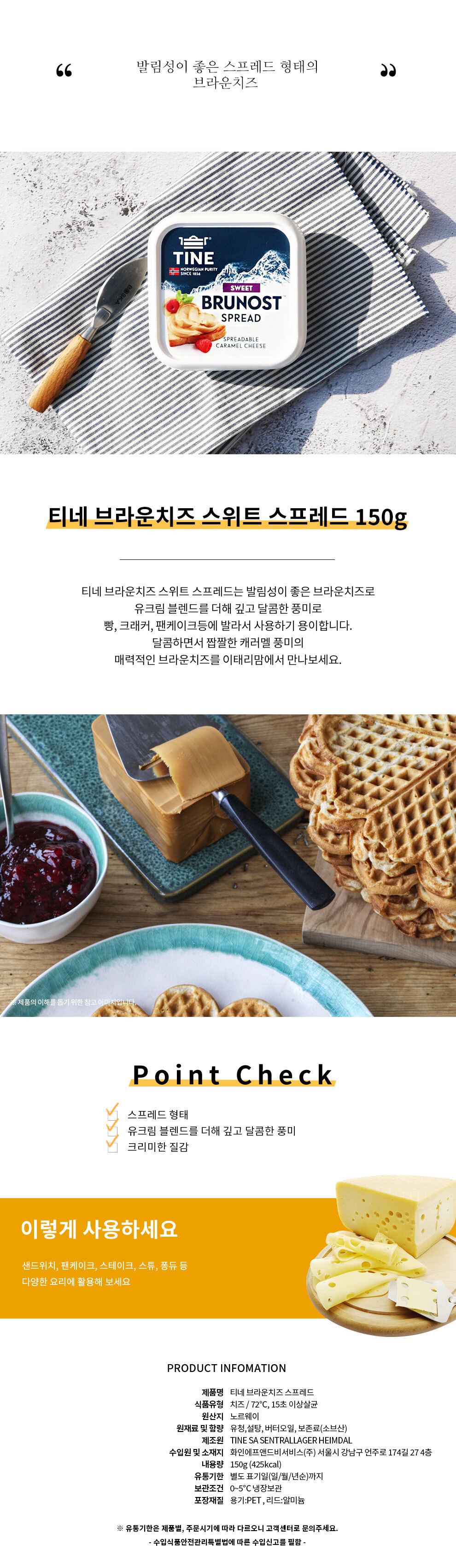 | 생산자/소재지/수입품여부/수입자 및 제조국 | 생산자:TINE SA SENTRALLAGER HEIMDAL / 소재지:노르웨이 / 수입자 및 제조국:화인에프앤드비서비스(주) | ||