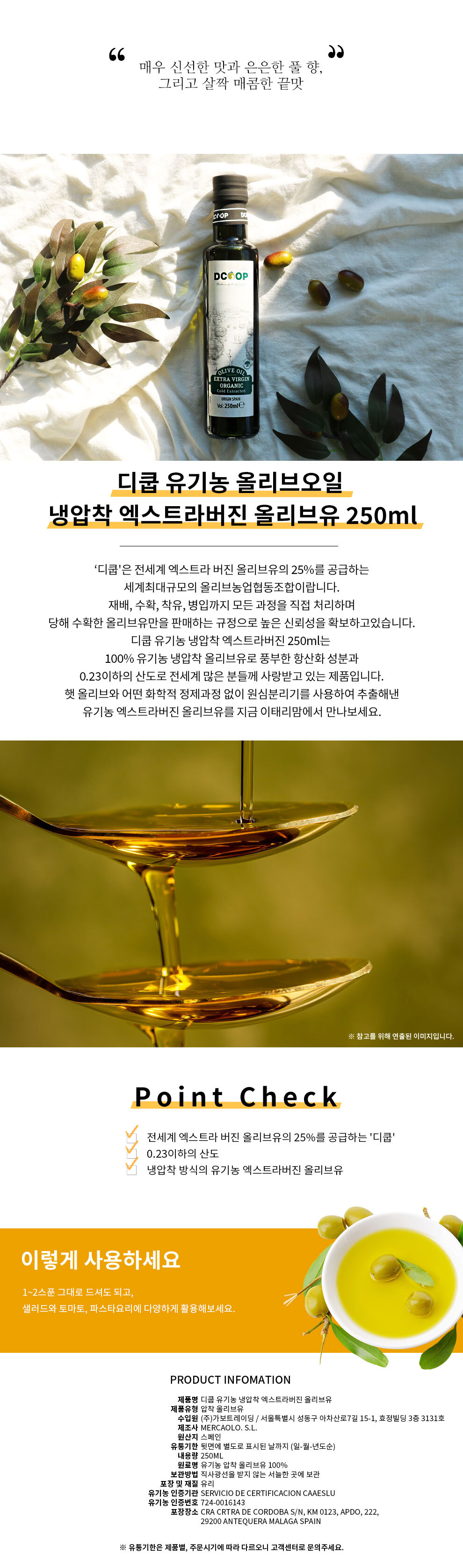 - 오일동결 ex) "올리브오일이 얼어있어요!" (올리브오일의 어는점은 약 8~10℃입니다. 정상적인 제품으로 자연해동하여 사용하시면 됩니다.)