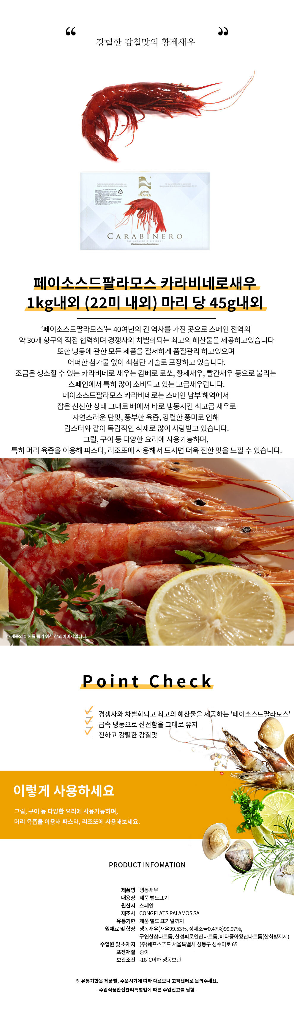 | 식품의 유형 | 냉동새우 | 제조원 | CONGELATS PALAMOS SA |