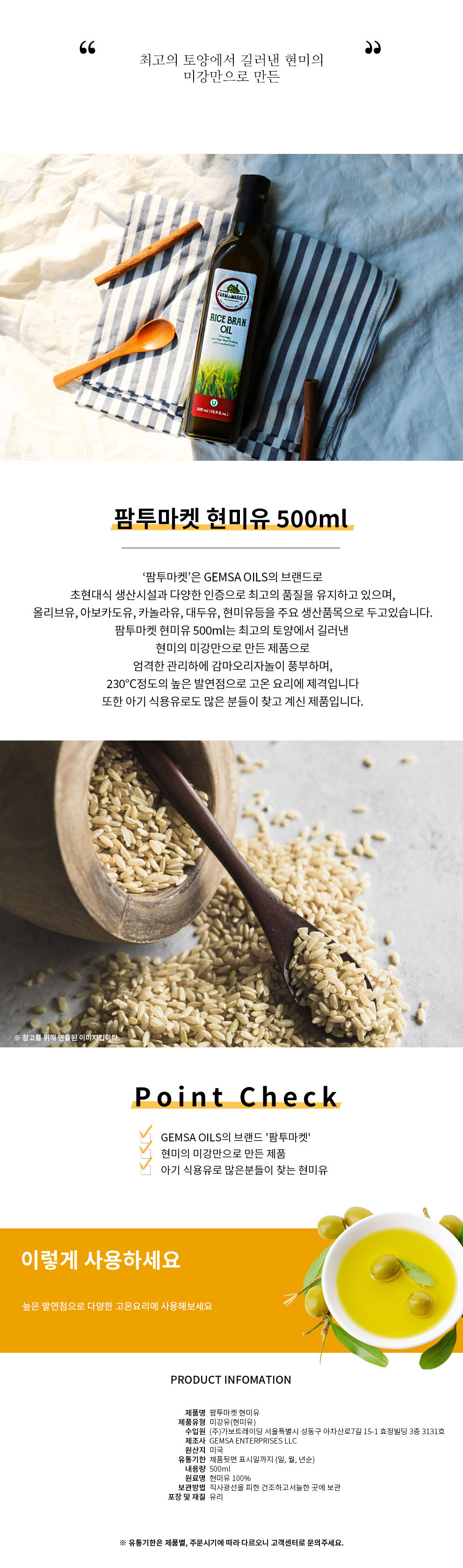 - 오일동결 ex) "올리브오일이 얼어있어요!" (올리브오일의 어는점은 약 8~10℃입니다. 정상적인 제품으로 자연해동하여 사용하시면 됩니다.)