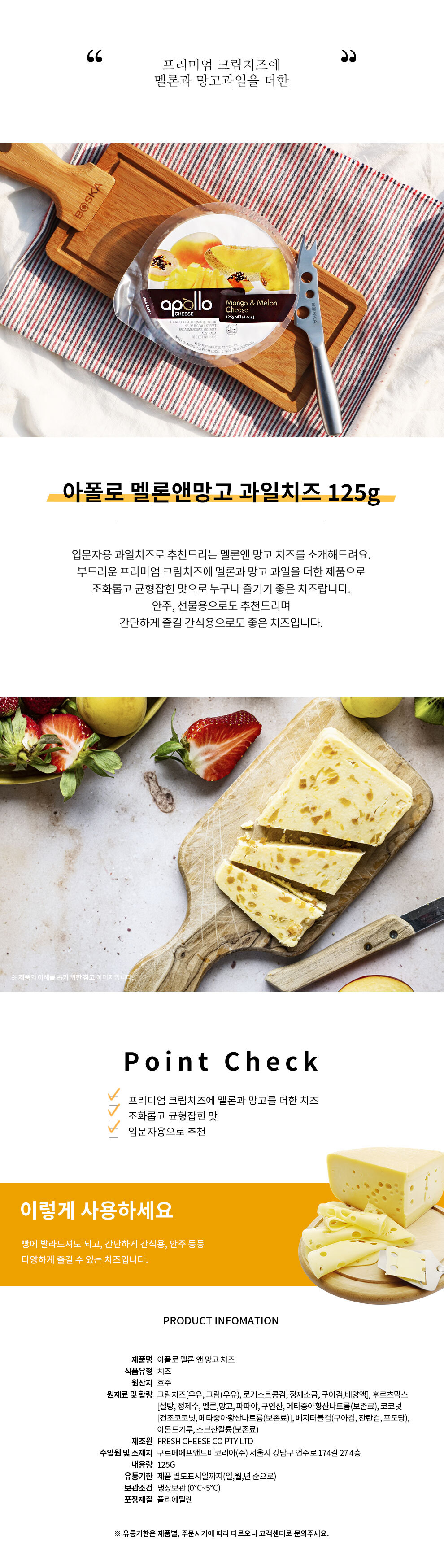| 제조원 | FRESH CHEESE CO PTY LTD | 원산지 | 호주 |